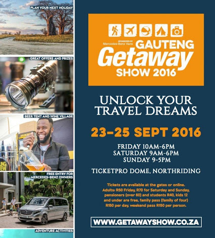 The Gauteng Getaway Show takes place at the TicketPro Dome in Joburg from 23 – 25 September.